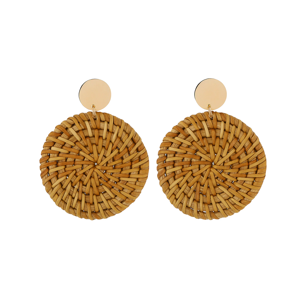 Nosso brinco Boho Chic possui um design praiano, todo feito em fibra natural (rattan) e é perfeito para quem gosta de brincos leves e estilosos para o dia a dia. Seus looks ficarão ainda mais elegantes e com a cara do verão.